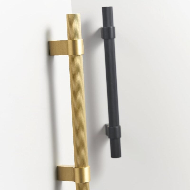 Die geriffelte Struktur sorgt für optische Akzente und einen angenehmen Griff. Sie passt gut in moderne Küchen, wo die Struktur den flachen Schränken Wärme verleiht, ohne dabei überladen zu wirken.