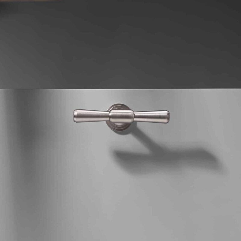 Tiroirs compacts fréquemment utilisés. Tiroirs à couverts et à ustensiles. Cuisines industrielles et contemporaines. Armoires de salle de bains. Espaces où la quincaillerie doit être solide et bien visible.
