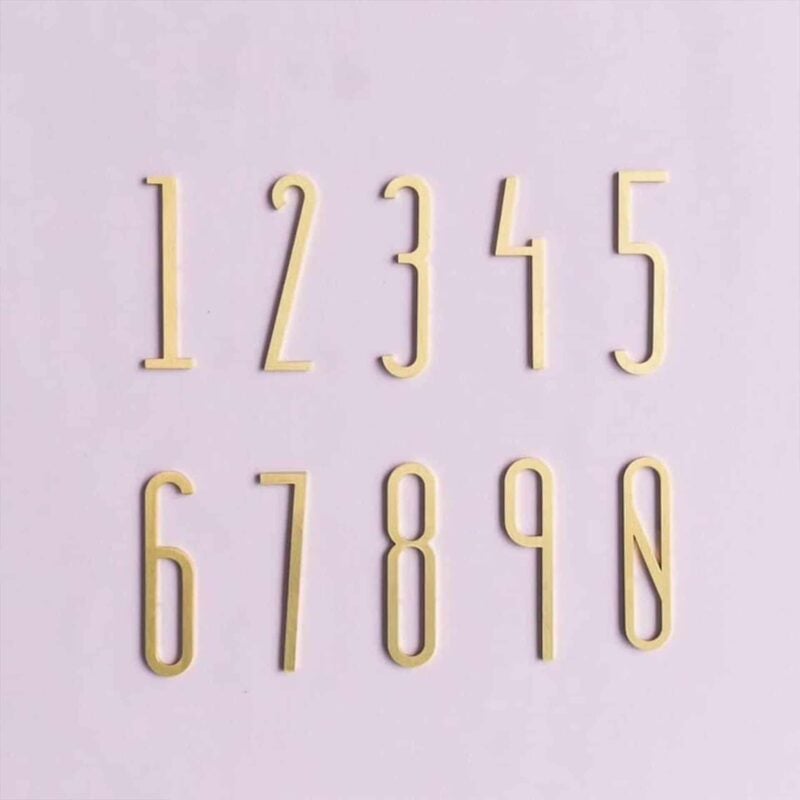 Massief messing huisnummers en letters. Meerdere afwerkingen voor buitenbewegwijzering. Duidelijke zichtbaarheid.