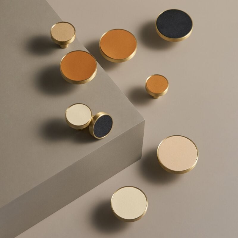 Met leer beklede messing hardware die natuurlijke materialen combineert. Verkrijgbaar in meerdere afwerkingen.